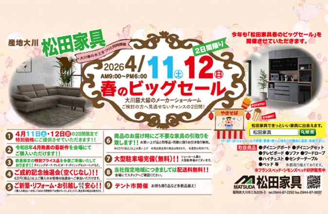 「松田家具、春のビッグセール」開催のお知らせ