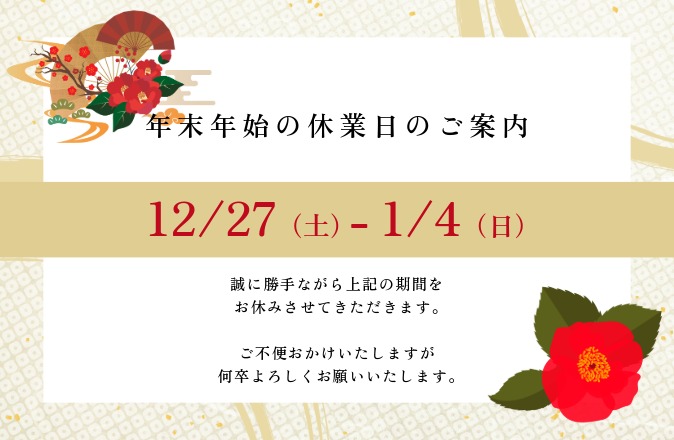 休業期間 :2025年12月27日(土)~2026年1月4日(日)